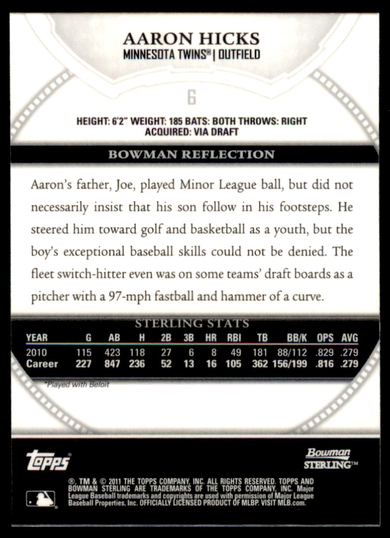 | 2011 Bowman Sterling Aaron Hicks Minnesota Twins #6 |