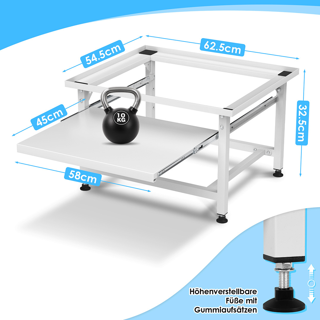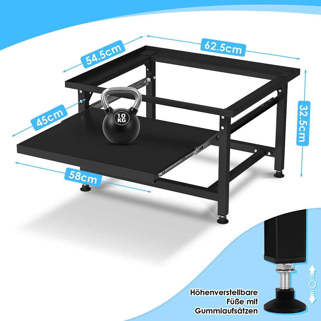Maximale Tragfähigkeit: Gesamt 150 kg, ausziehbare Platte 10 kg
