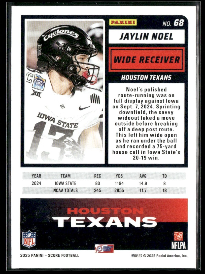 | 2025 PANINI SCORE JAYLIN NOEL HOUSTON TEXANS RC #68 |