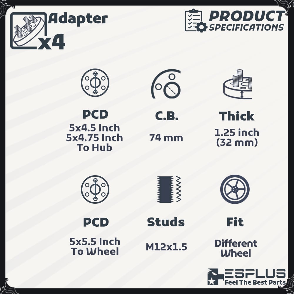 | Spacer Bolt Pattern: | 5x4.75" to 5x5.5" |