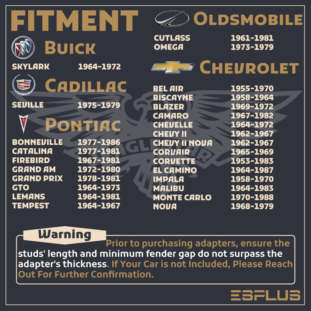Compatibility chart from Ebay is only designated for Bolt Pattern, Center Bore And Thread Pitch check. The actual fitment varies based on the requirements of wheels. Lug nuts/bolts seat has to strictly follow the wheel condition. If you are not sure, please do not hesitate to ask customer service.