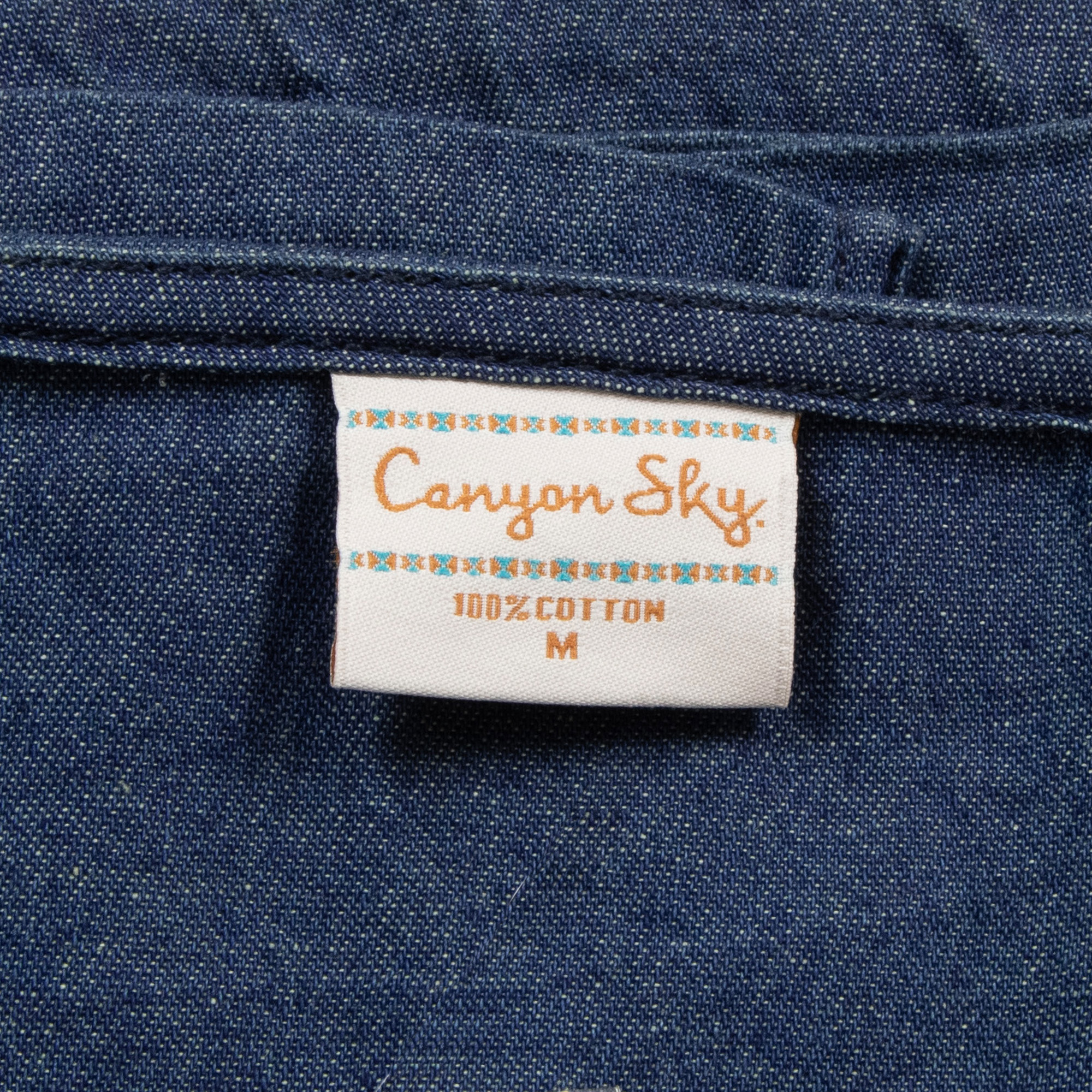 - Sport a feminine look in the Canyon Sky women's embroidered denim long sleeve peasant shirt designed for casual everyday wear.