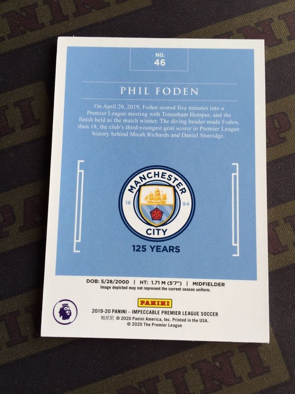 2019-20 Panini Impeccable Phil Foden Rookie RC Platinum 6/20 Manchester City
