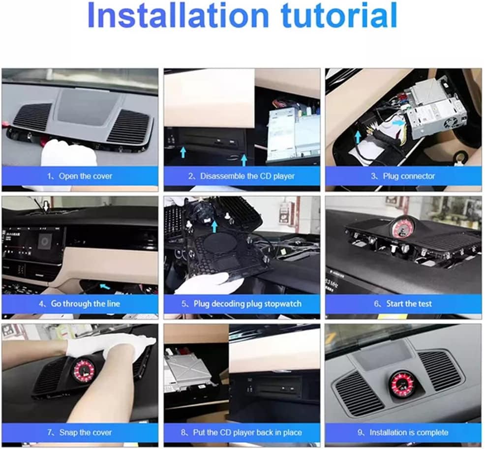 Feature 1. Specific for Porsche Cayenne 958 92A 2011 2012 2013 2014 2015 2016 2017 2. Can be used as a conventional clock 3. Excellent accessory and decoration 4. Made of high‑quality ABS, anti-corrosion, wear resistance, sturdy, not easy cracked 5. Molded from original car parts, factory fitted 6. Easy to install, plug and play Packing List 1x dashboard panel cover 1x stopwatch 1x cables