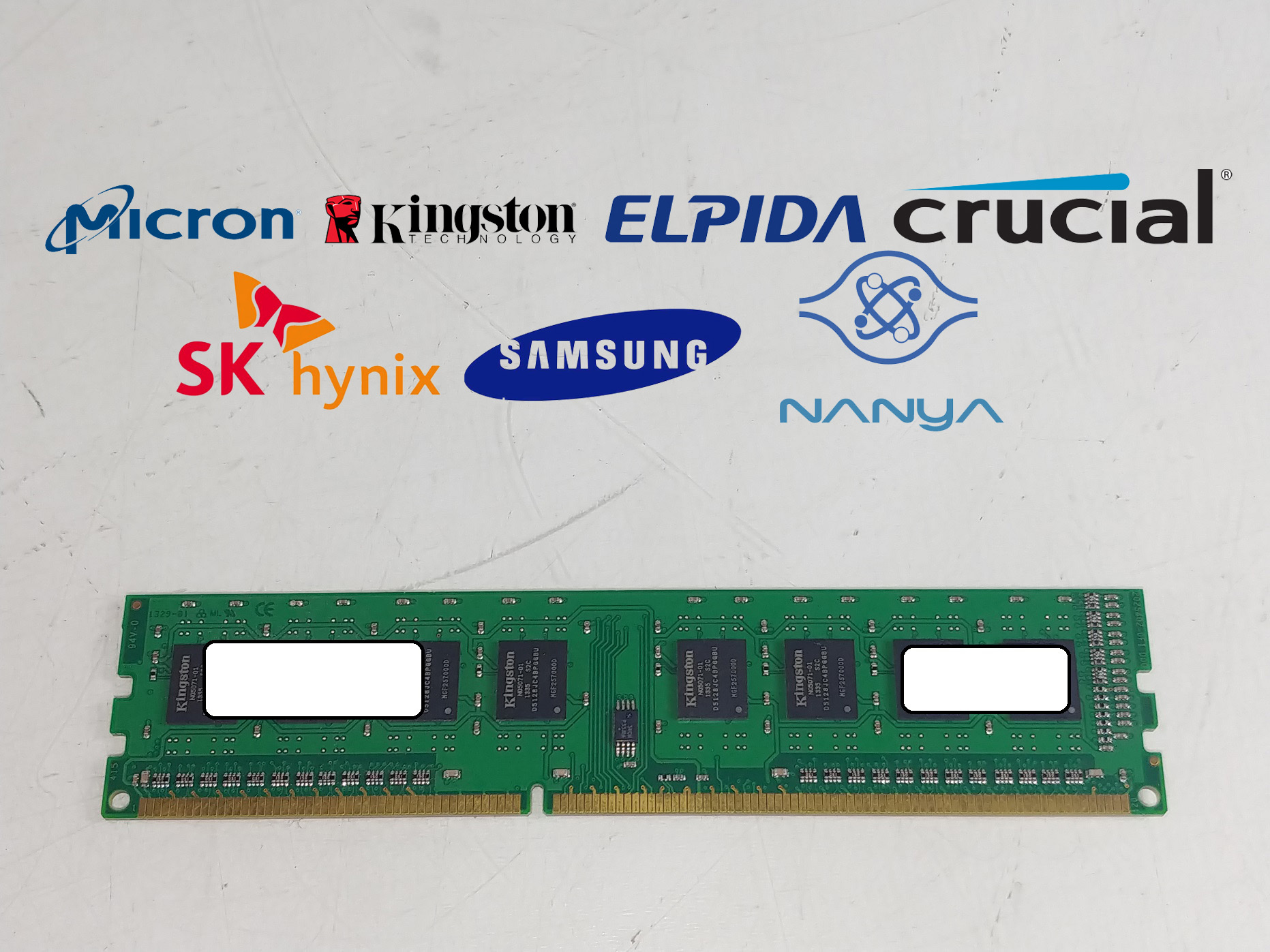 Lot of 5 Mixed Brand 4 GB PC3-10600 (DDR3-1333) 1Rx8 DDR3 Desktop Memory