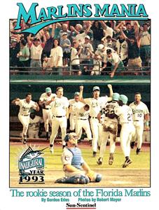 Here's a softcover copy of Marlins Mania by Gordon Edes. Published by The Sun-Sentinel Company in 1993, first edition. Book has 124 of stories, photos, stats and player bios of the Florida Marlins inaugural season. Excellent shape