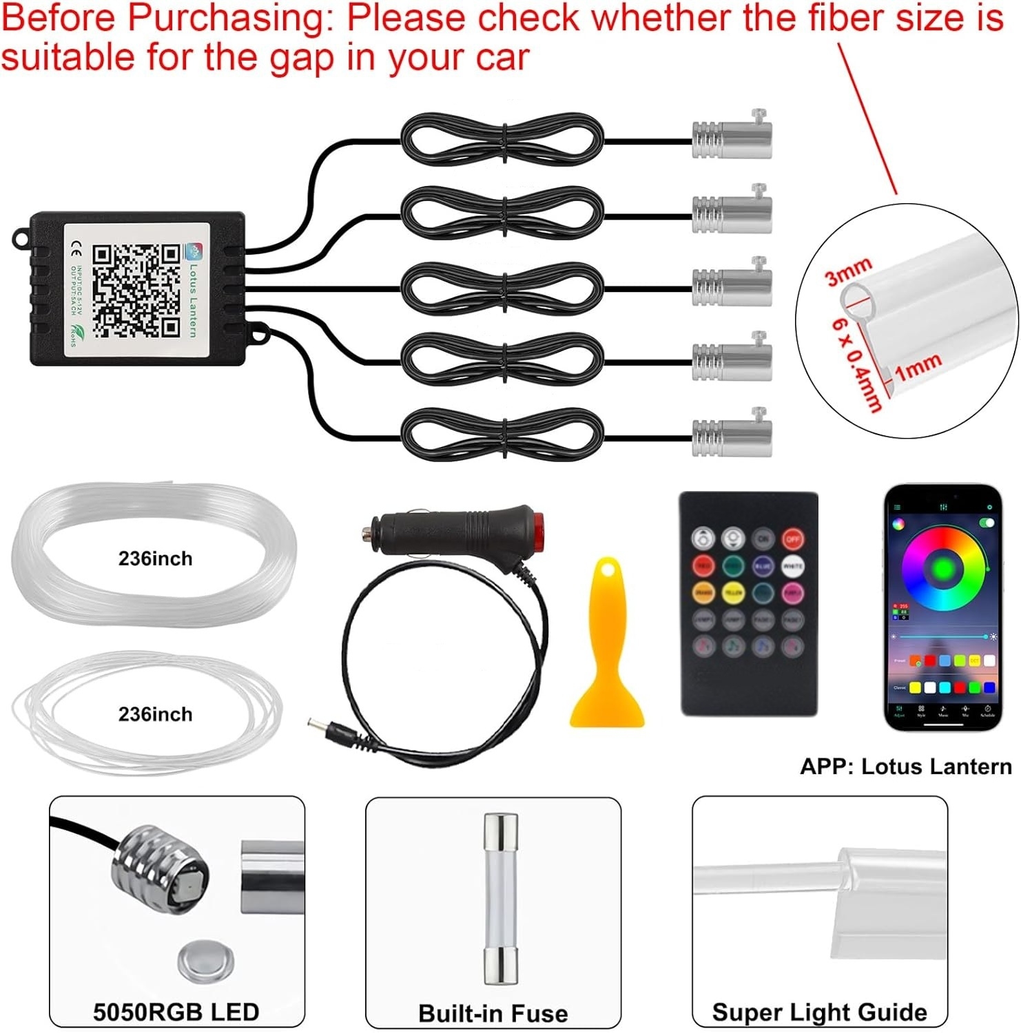 The length of the installed Optical fiber exceeds 100 inch. If the brightness of the Optical fiber end is dark, it is recommended to add 1Pc RGB LED light at the end to make the Optical fiber cable meet the brightness requirements.