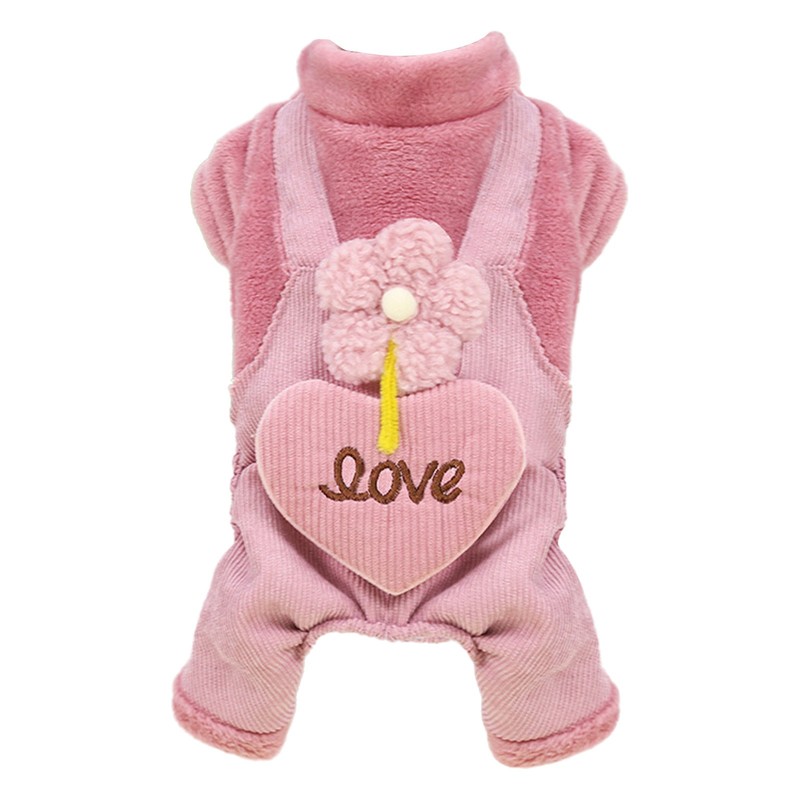 Dog Pet Overalls Winter Coat Cute Jumpsuit Heart Decoration Sweaters Cozy Warm