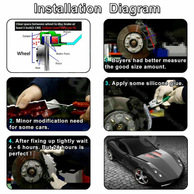 Feature: Universal compatible with: Suitable for 18.3-23.6 inch wheels. They don't fit for the model as below: don't fit for Cruze, don't fit for Fawkes , don't fit for REIZ, don't fit for Roewe 550, don't fit for new REGAL, don't fit for Mazda 3, don't fit for Mazda 2, don't fit for excelle GT, don't fit for Ferrari Cayenne,don't fit for sportage, don't fit for 07 Odyssey, don't fit for Lexus ES, don't fit for Subaru Legacy. etc Please check the size of the wheel of your car before purchasing, thanks. Condition: 100% Brand New Made by High Quality Plastic. Easy Install with Silicon Glue (Silicon Glue isn't included ) Dimension of front cover Max: 240mm x 65mm x 45mm Dimension of rear cover Max: 190mm x 52mm x 40mm Color: Red