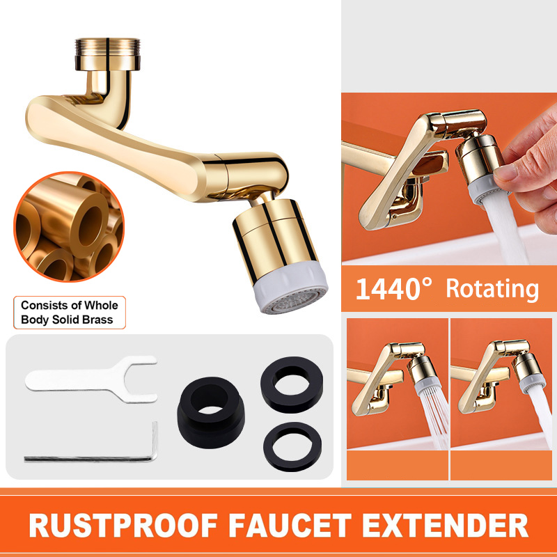 faucet extender is made of solid brass connectors & arm, ABS aerator body, multi-layer plating surface for durability, anti-rust and self-cleaning.