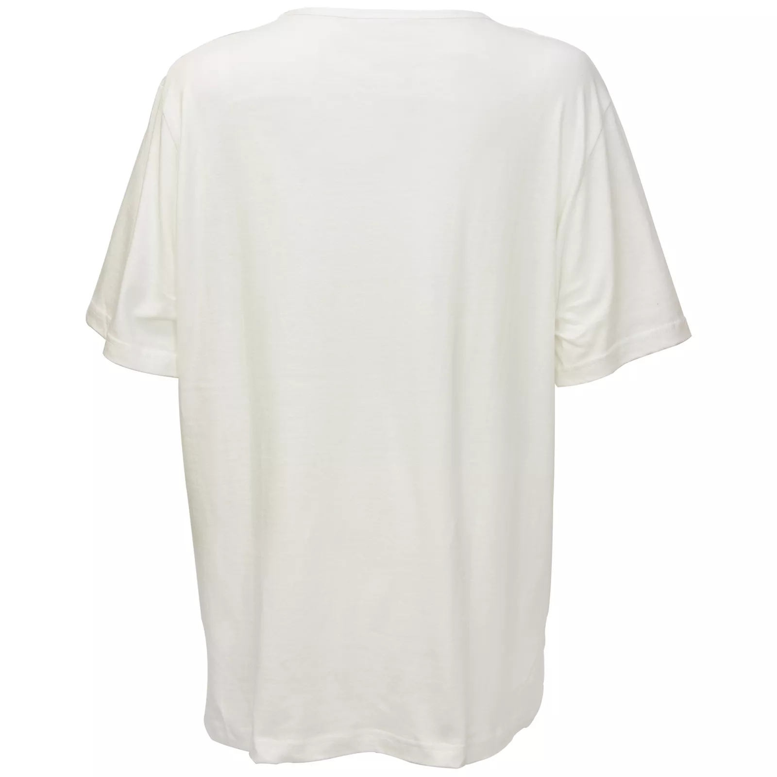 Showcase your patriotic flair in this Sparkling Stars & Stripes graphic print women's t-shirt from The Skyline Collection. A great way to display your American pride, this festive white tee with short sleeves and a scoop neck features a graphic print of various stars and stripes in red, white, and blue with red, silver, and blue sequin accents. Made with 100% cotton, this women's tee is super soft for all-day comfort and is machine washable for easy care. Tagged a women's shirt size x-large (XL). Measurements: 24" Chest, 28" Overall Length, 9" Sleeve Length. Made in India.