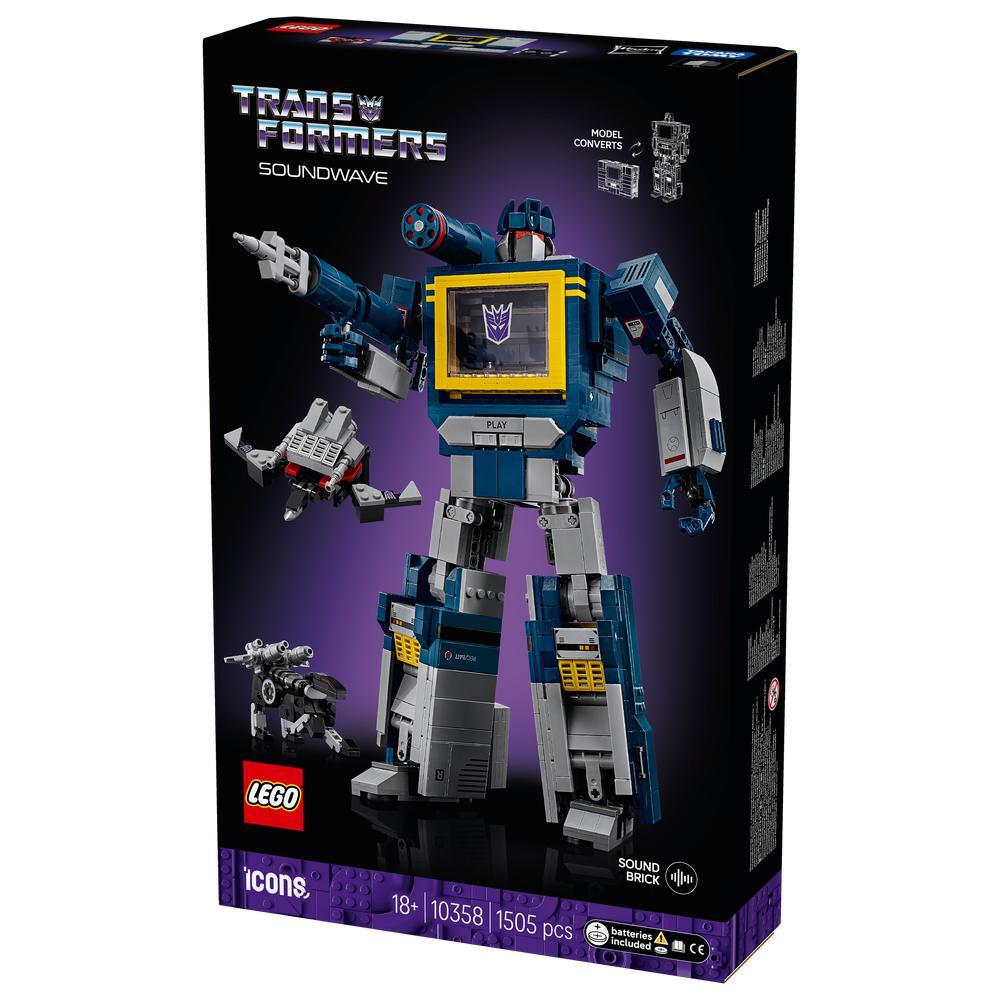 Dive into the world of science fiction with the LEGO® Icons Transformers: Soundwave building set for adults. Craft a detailed LEGO interpretation of the iconic Decepticon Soundwave, along with his trusted companions Ravage and Laserbeak. Press Soundwave’s play button to activate voice and sound effects, convert each robot into its alternative mode and pose the characters to recreate epic film scenes.