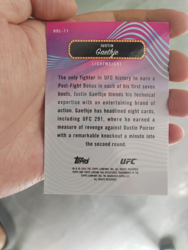 2024 Topps Finest UFC Justin Gaethje Headliners Gold Shimmer /39 #HDL-11