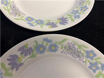 Here is a set of 4 - 8 1/2" salad or lunch plates made by Corelle with the Starflower design. They are in great condition free of chips or cracks, some utensil marks. Plates are marked Corelle by Corning microwavable made in USA no stove top or broiler.