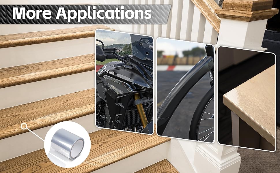 Flexible and durable high quality material. This material is virtually invisible yet helps prevent chipping, scratching, scuffing to the protected surface.