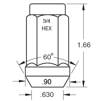 - Used for steel and alloy wheels with 60 degree tapered seating