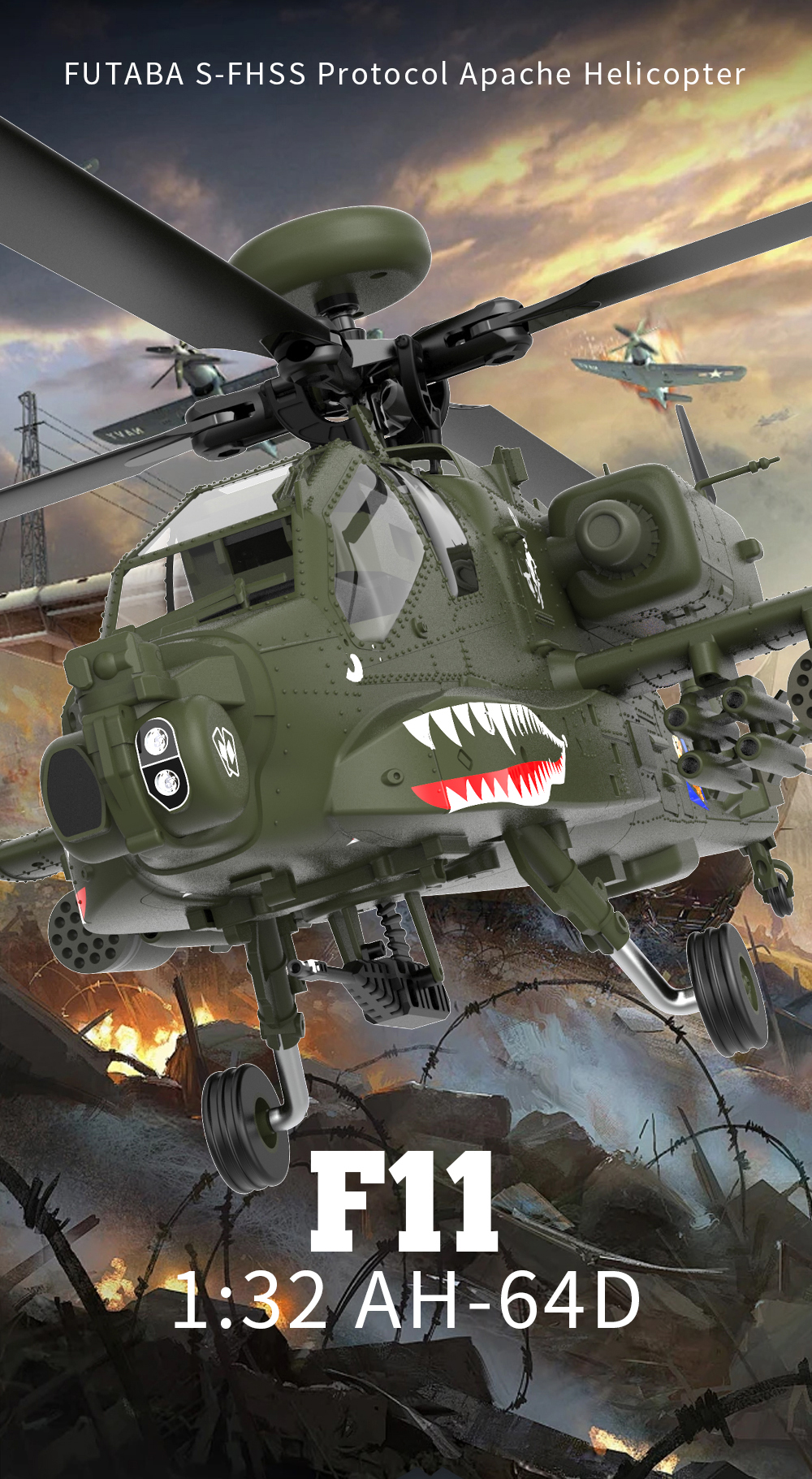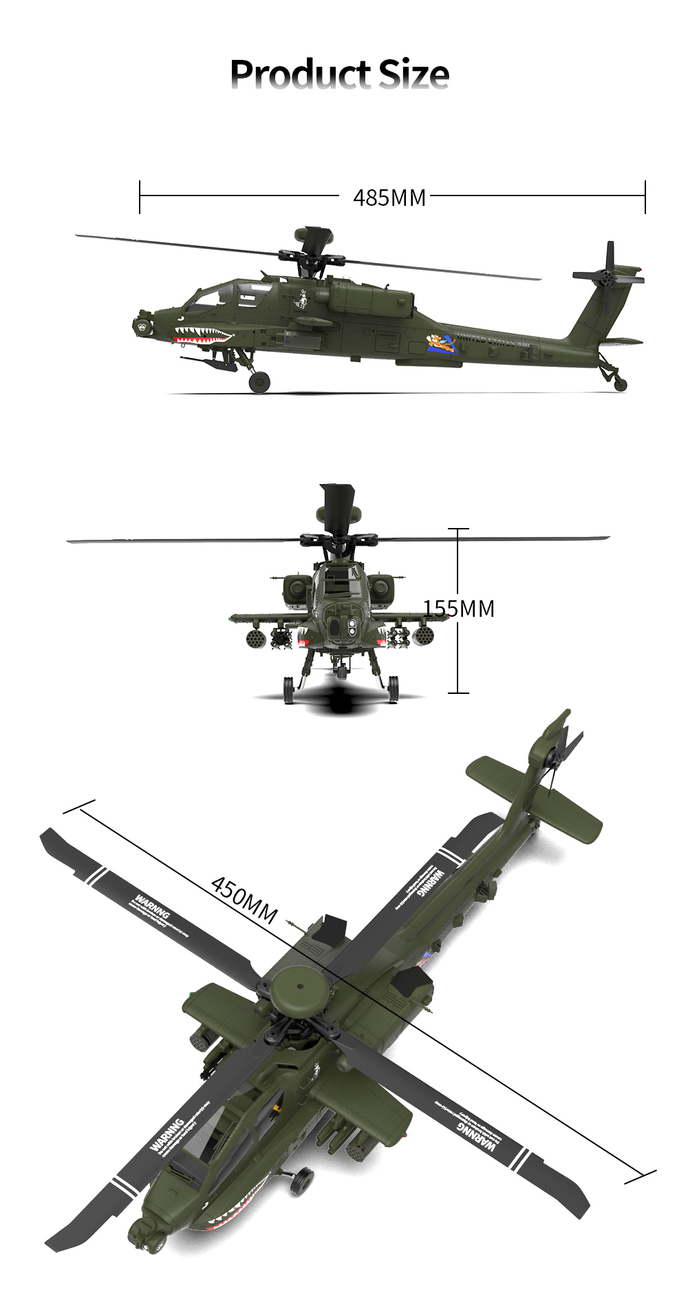 Apache RC Helicopter, verwendet ein No-aileron Design mit Dual-Achsen