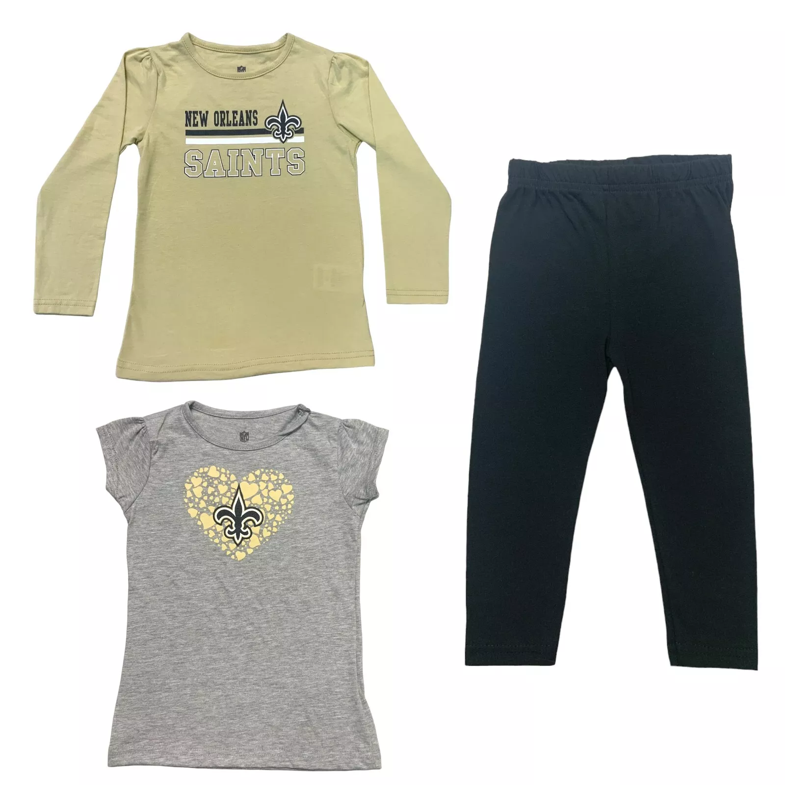 NFL New Orleans Saints Girls 3 Piece Clothing Set Grey/Gold/Black, 4T