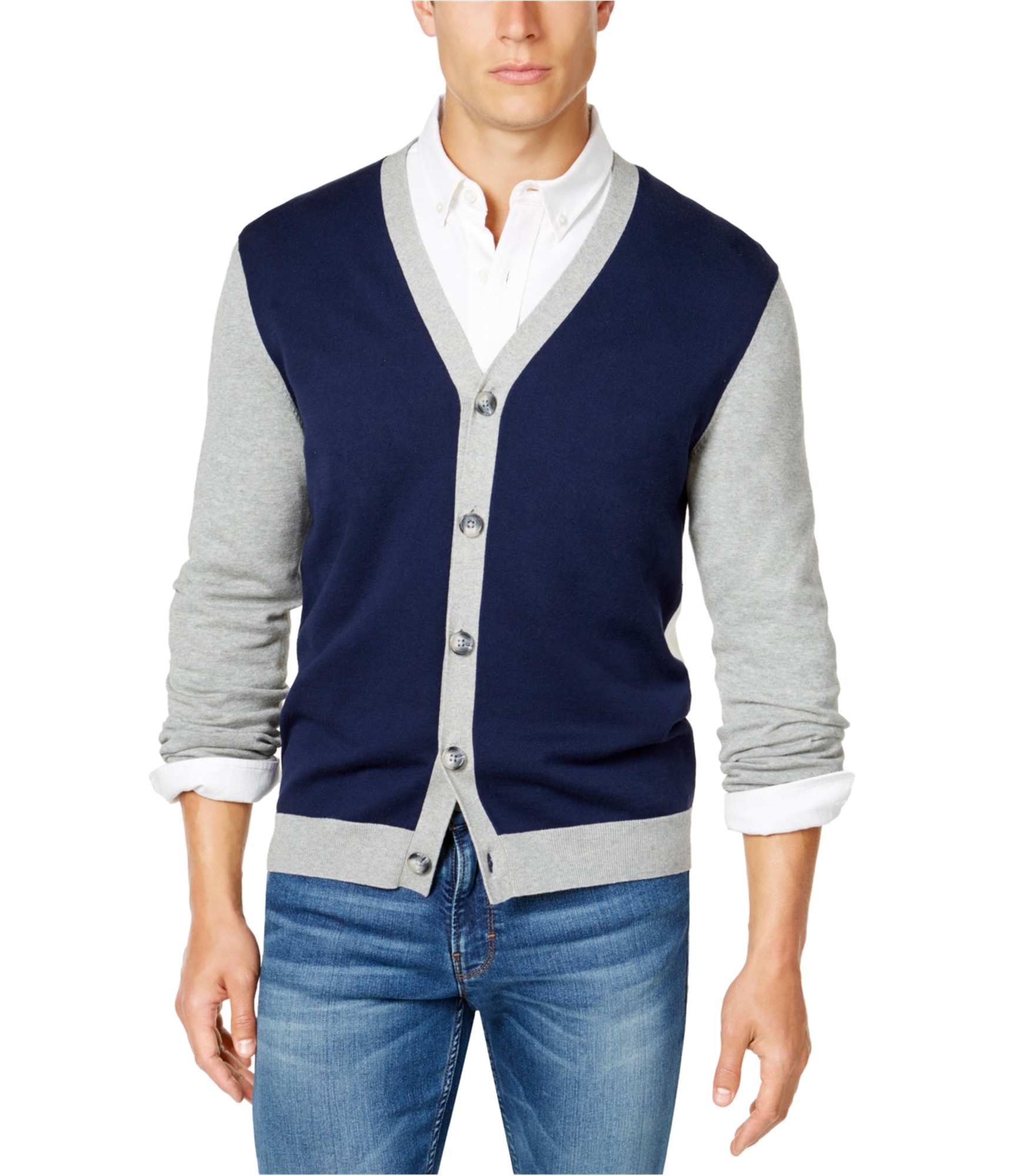 PREMIUM MATERIAL: Crafted from 100% cotton, this Club Room Mens Colorblocked Cardigan Sweater is perfect for all seasons due to its medium-weight density.