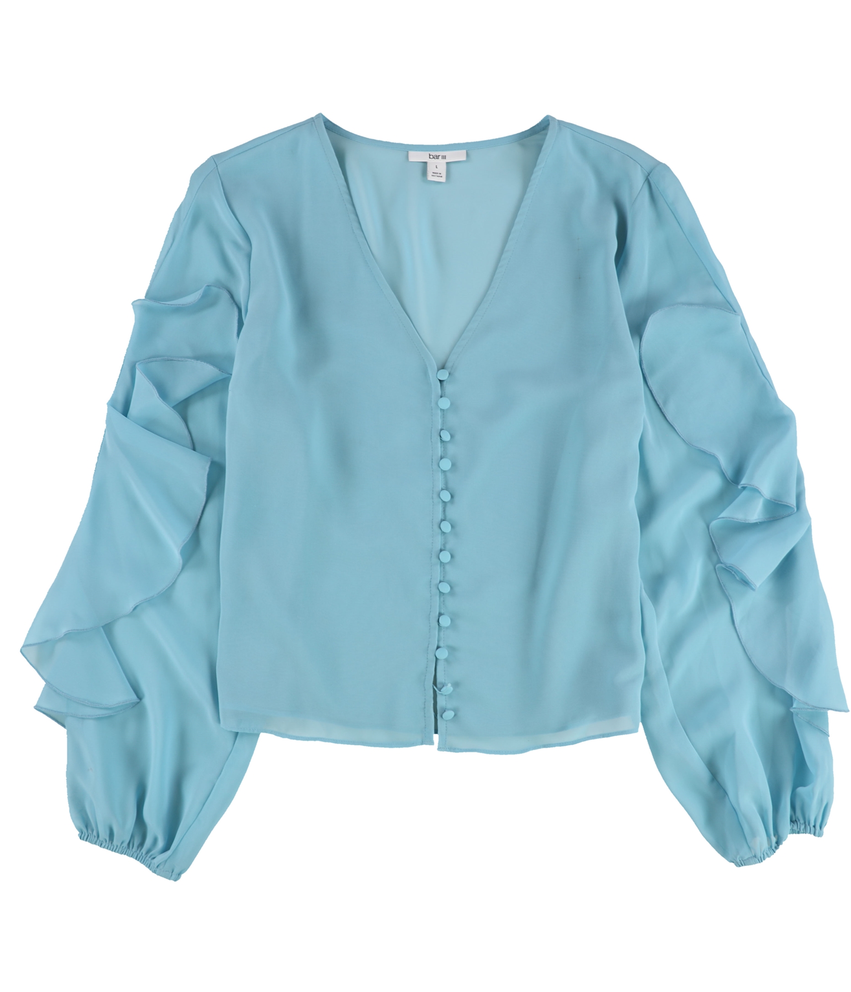 bar III Womens Ruffle Sleeve Button Down Blouse, ltblue, L