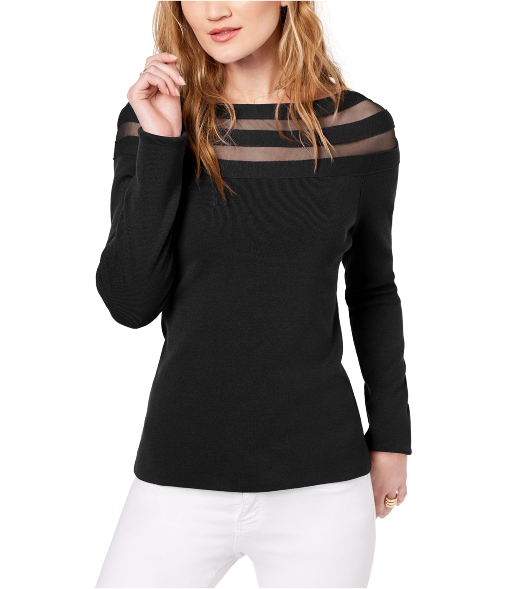 I.N.C Womens Illusion Neck Pullover Sweater, black, L