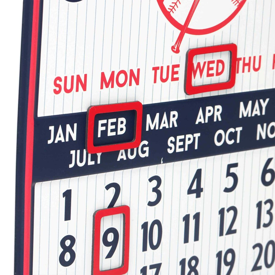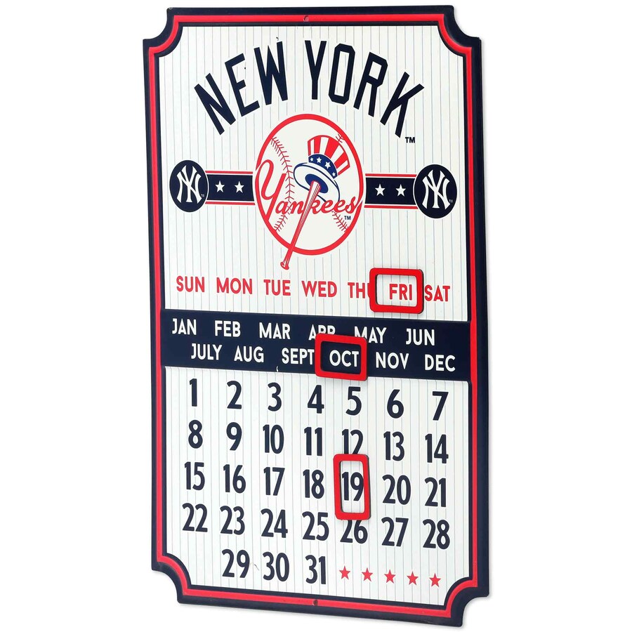 Add some New York Yankees spirit to your home with this unique wall calendar. With each day and month listed, it's easy to mark today's date in a while displaying your baseball fandom in this vintage inspired metal calendar. This retro-inspired wall art features team logo and colors with magnets to mark the date. It's made of tin so it's lightweight but sturdy. Officially licensed Major League Baseball merchandise. Measures 10" W x 14" H.