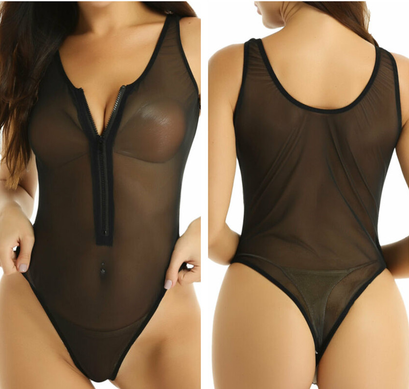 Front with see-through lace design, open butt and minimal coverage.