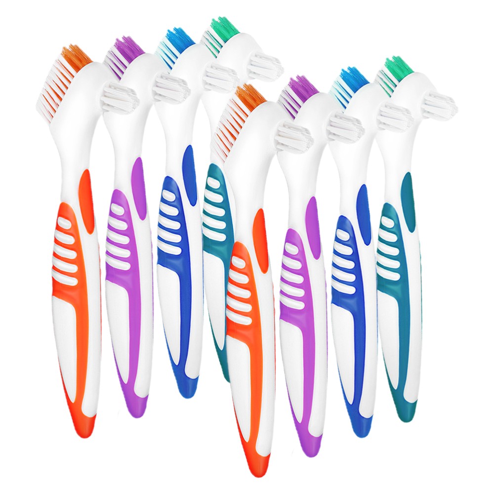 -Toothbrush denture brush removal effective cleaning prevents tartar double sided false teeth toothbrush.