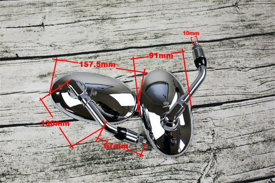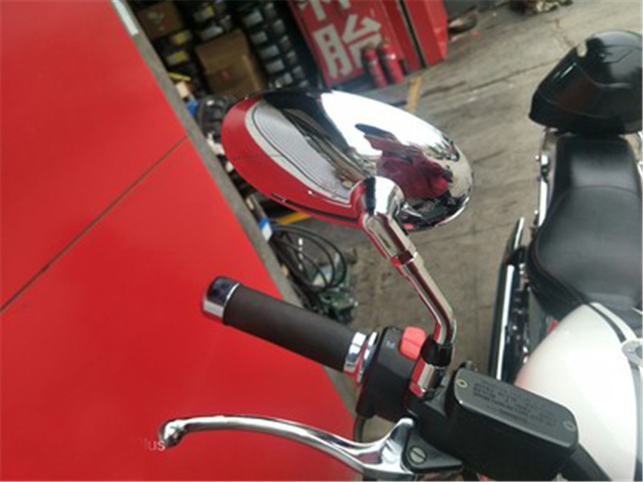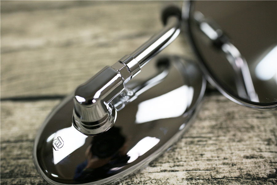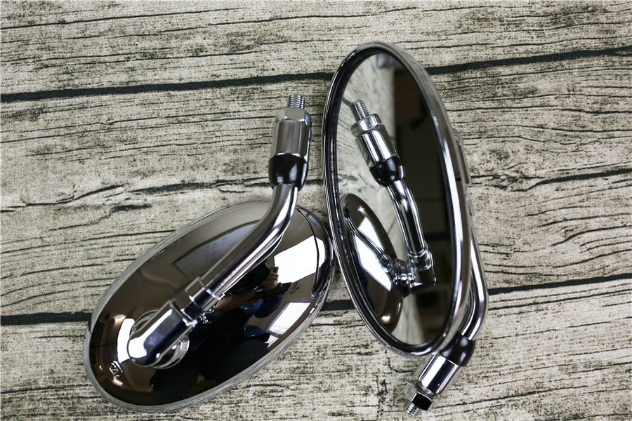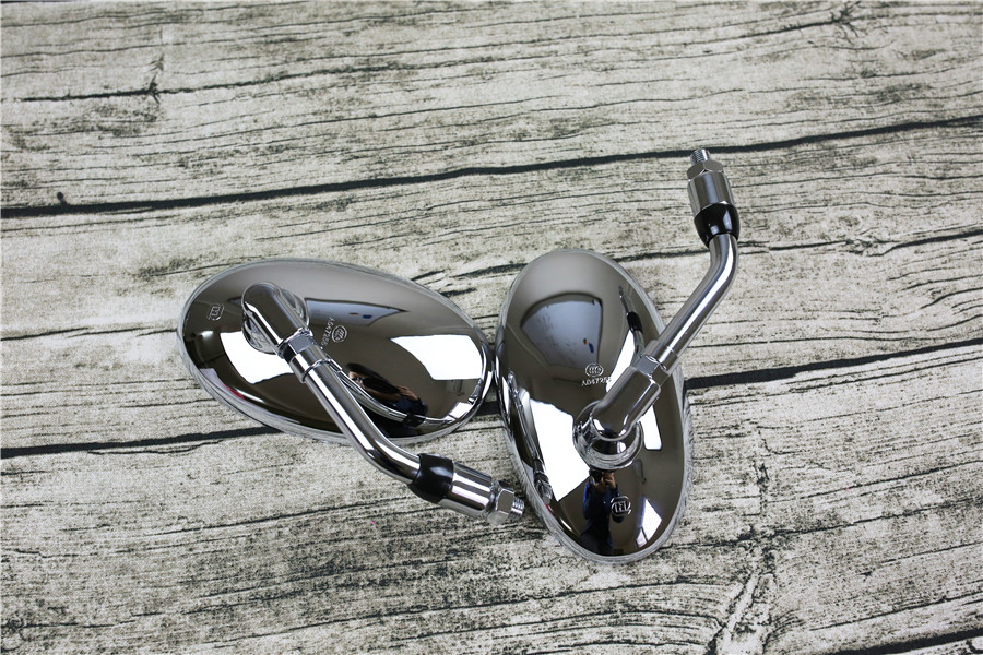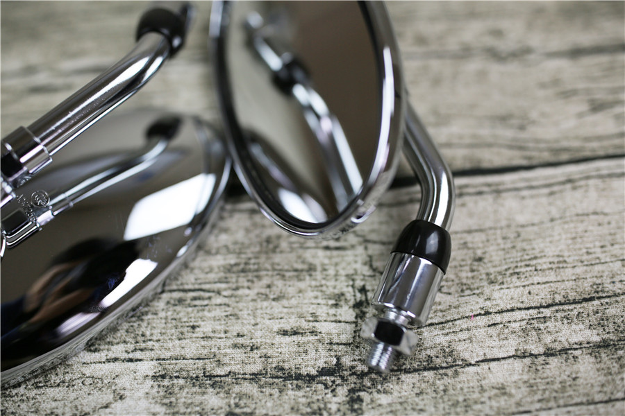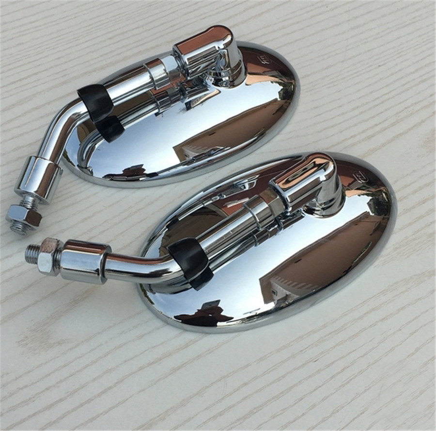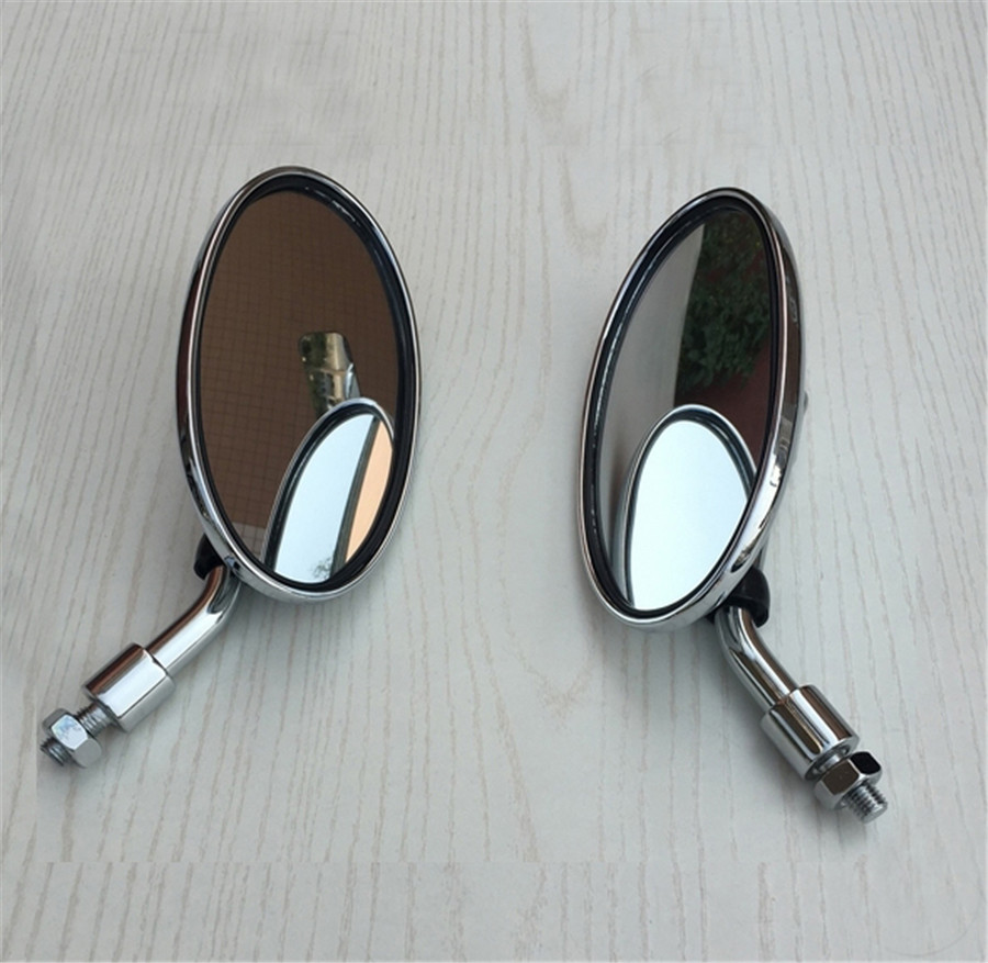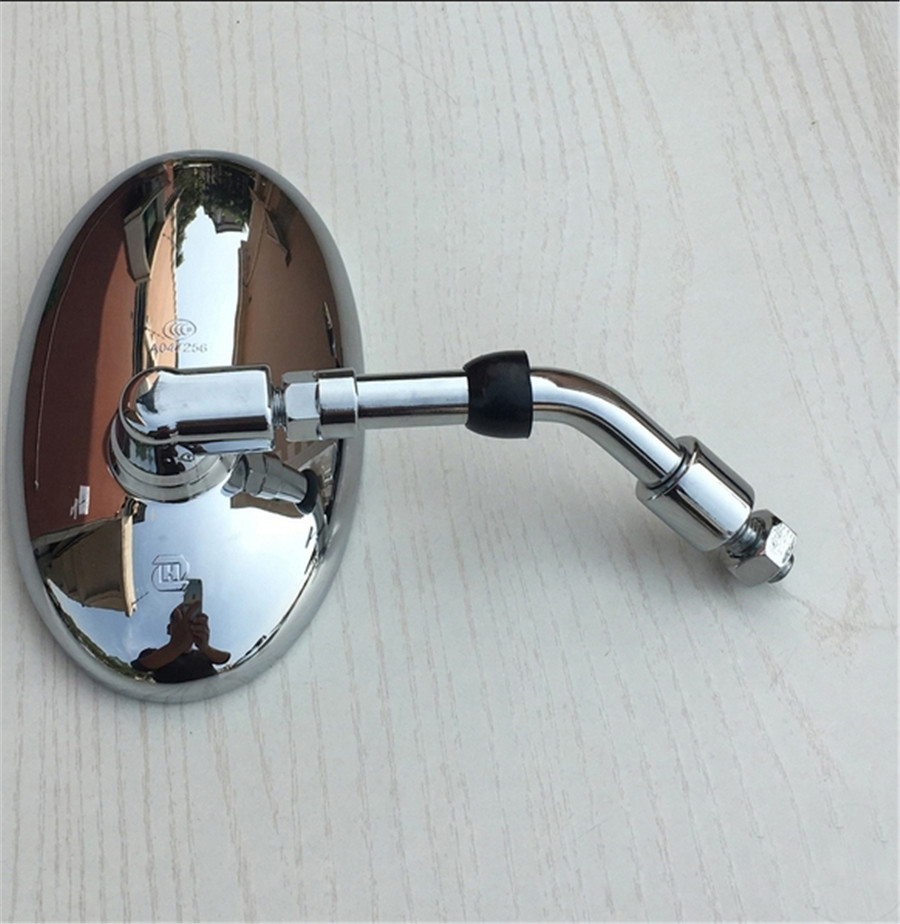 2Pcs Motorcycle Retro Oval Modified Short Handle Plating Rearview Mirror Silver