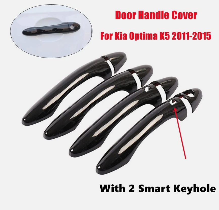8PC Gloss Black Door Handle Cover For Kia Optima K5 2011-2015 W/ 2 Smart Keyhole