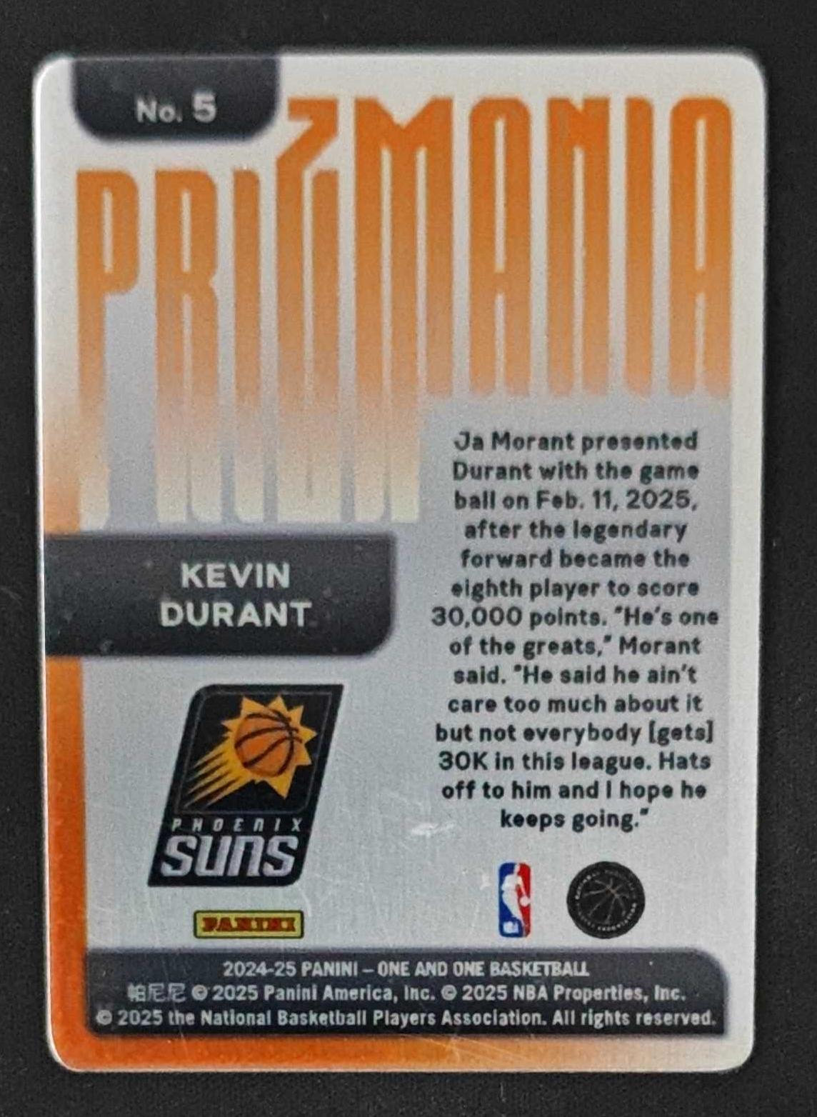 2024-25 Panini One And One Kevin Durant #5 Phoenix Suns Prizmania Case Hit SSP