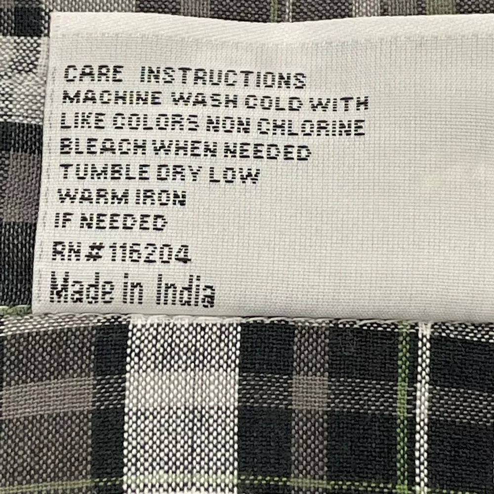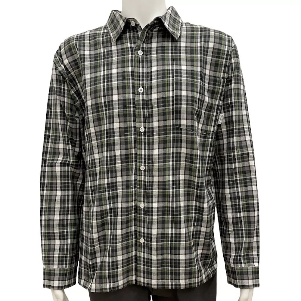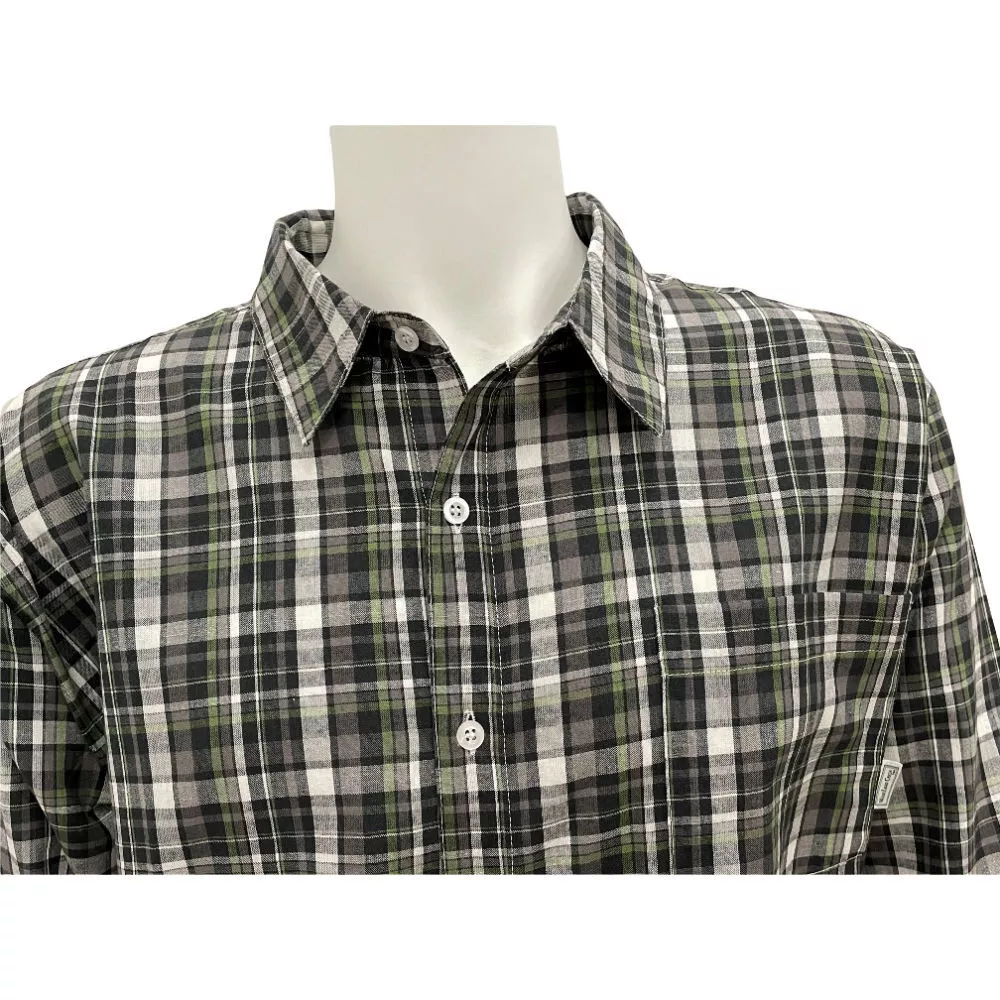 - Enjoy a regular fit in this black and green plaid shirt in a men's size medium.