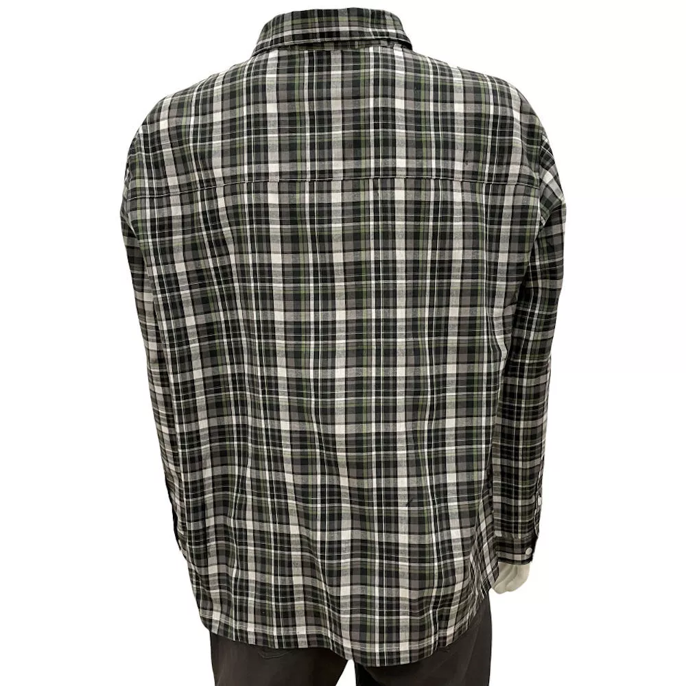 Woodland Creek Men's Long Sleeve Button-Up Shirt in Black & Green Plaid, Medium