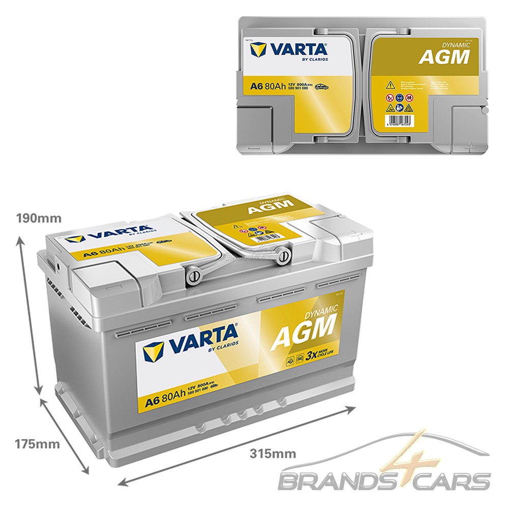 VARTA Starterbatterie VARTA DYNAMIC AGM 80Ah 800A A6
