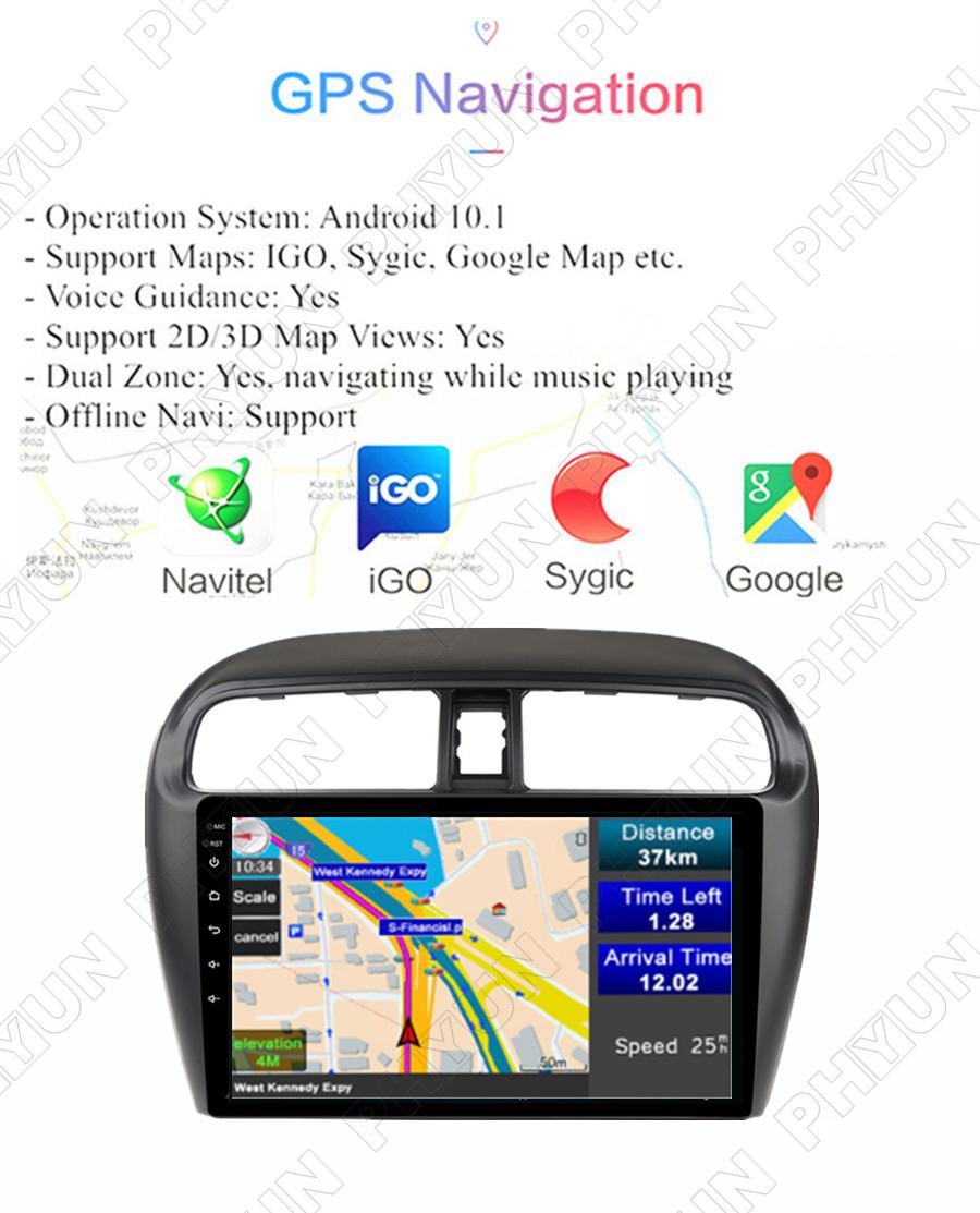 GPS | - Operation System: Android 10.1 - Support Maps: IGO, Sygic, Google Map etc. - Voice Guidance: Yes - Support 2D/3D Map Views: Yes - Dual Zone: Yes, navigating while music playing - Online Navi: Yes, support google maps online navigating |