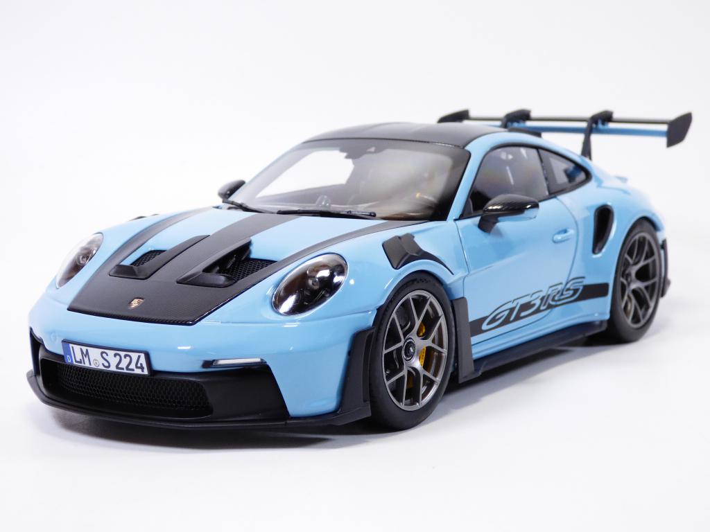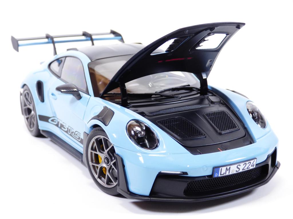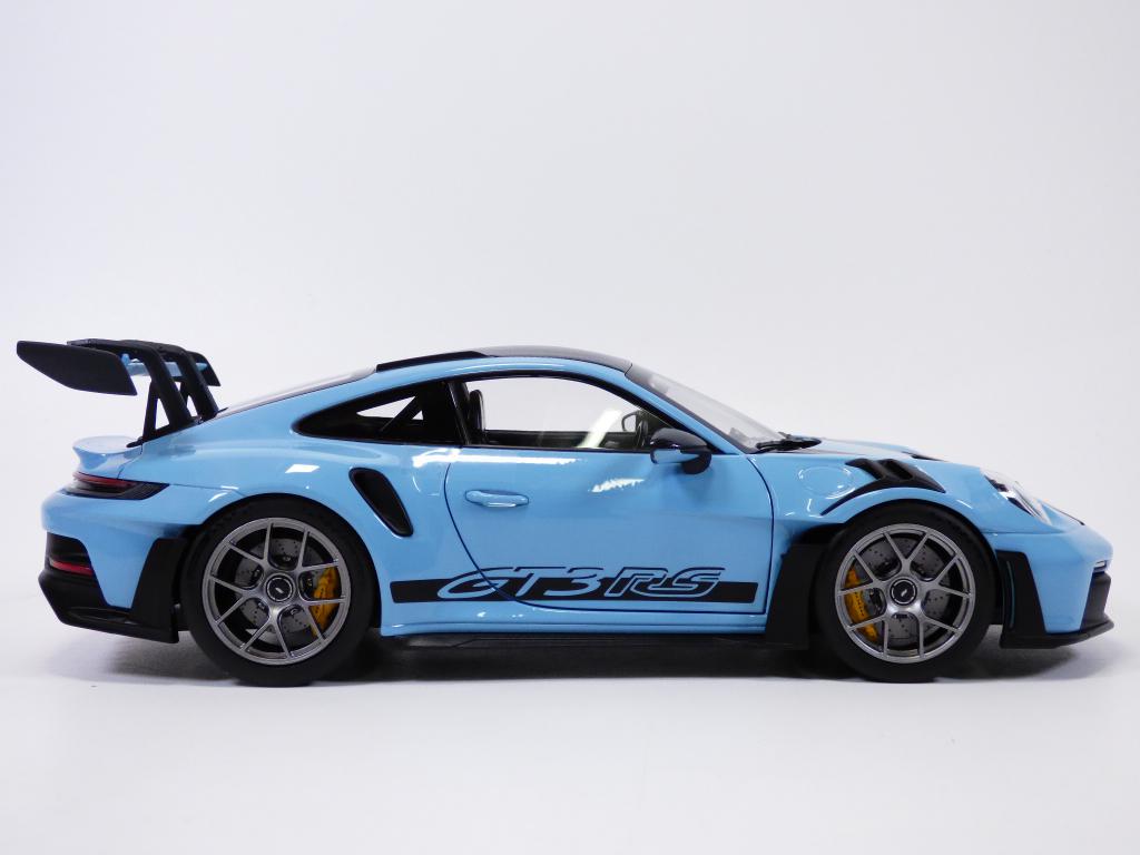 PORSCHE 911 type 992 en version GT3RS en version WEISSACH pak de couleur bleue Gulf à l'échelle 1/18