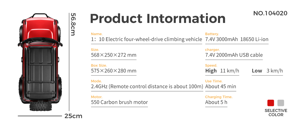 Product Description: 1: 10 electric 4WD climbing vehicle