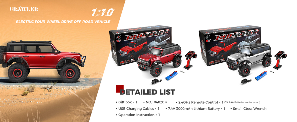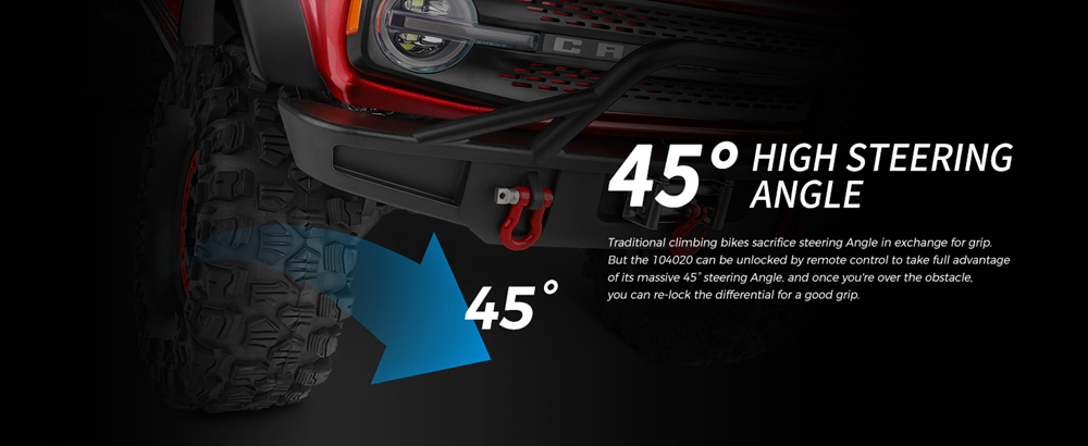 WLtoys 104020 1:10 electric climbing car full simulation structure design, full real car handling feeling, The cool lights of the whole car allow you to have a different visual experience.