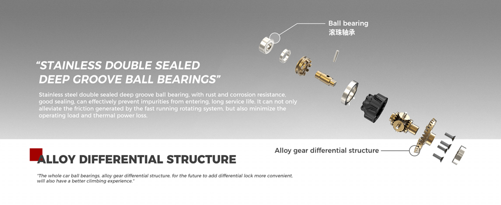 10. Ball bearings of the whole car, alloy gear differential structure. Have a better climbing experience.