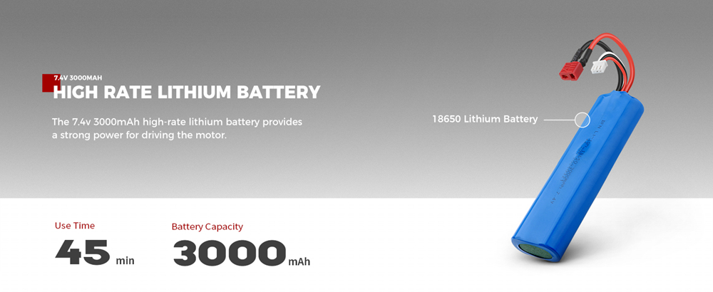 7. The 7.4v 3000mAh high-rate lithium battery providesa strong power for driving the motor.