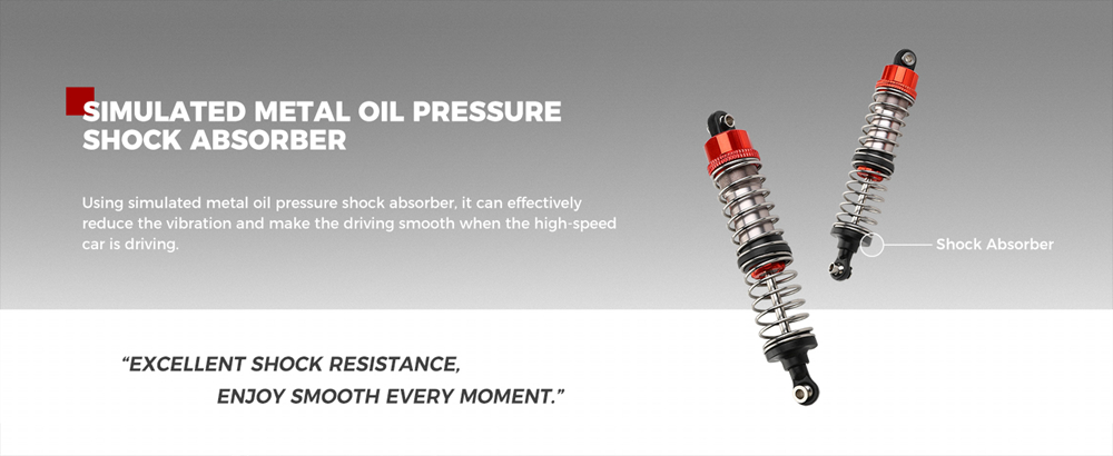 5. Using simulated metal oil pressure shock absorber, it can effectivelyreduce the vibration and make the driving smooth when the high-speedcar is driving.