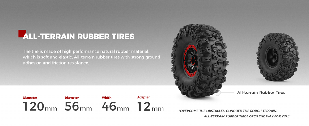8. The tire is made of high performance natural rubber materialwhich is soft and elastic, All-terrain rubber tires with strong groundadhesion and friction resistance.