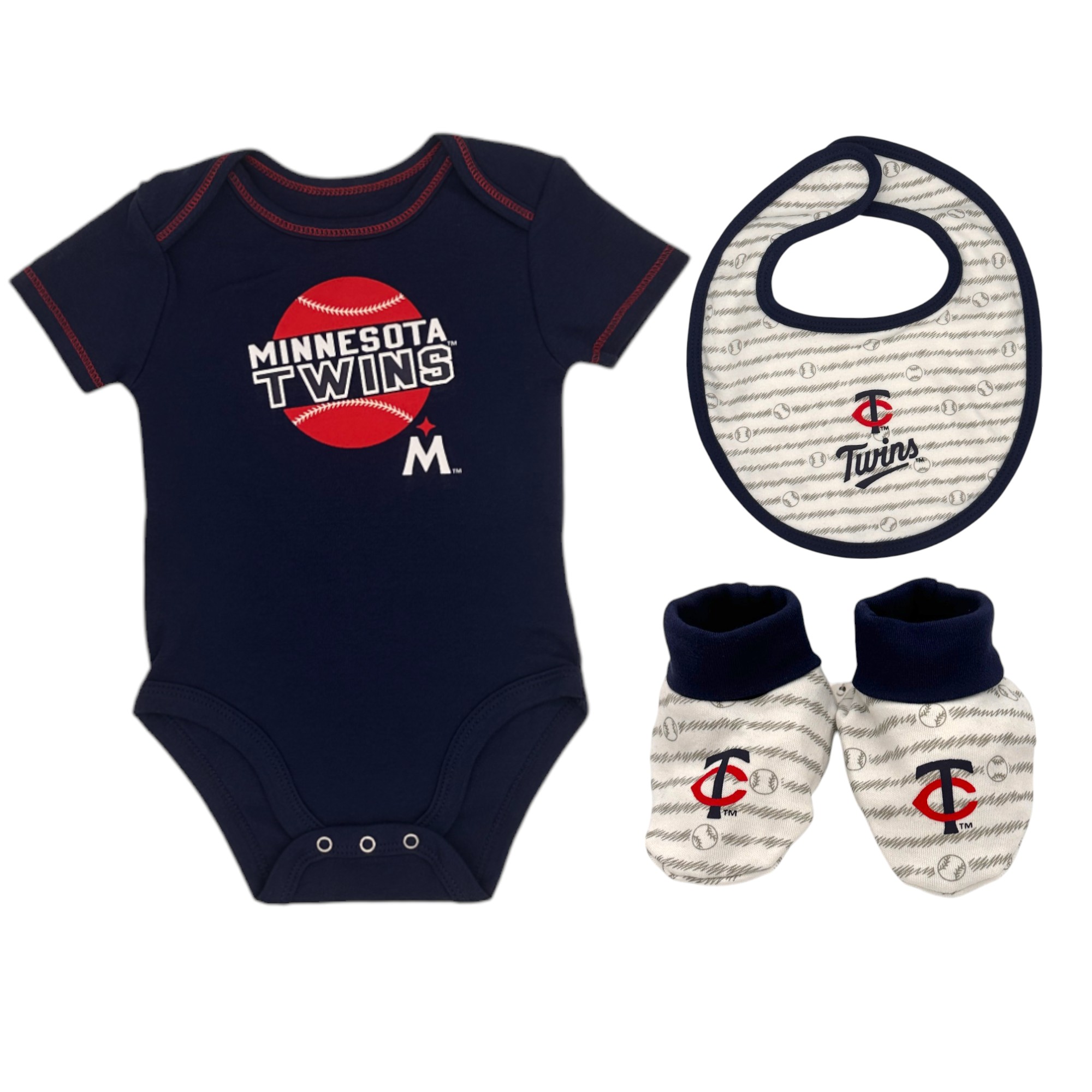 MLB Minnesota Twins Infant Layette Set 3pc Bodysuit, Bib & Booties, 6 Months