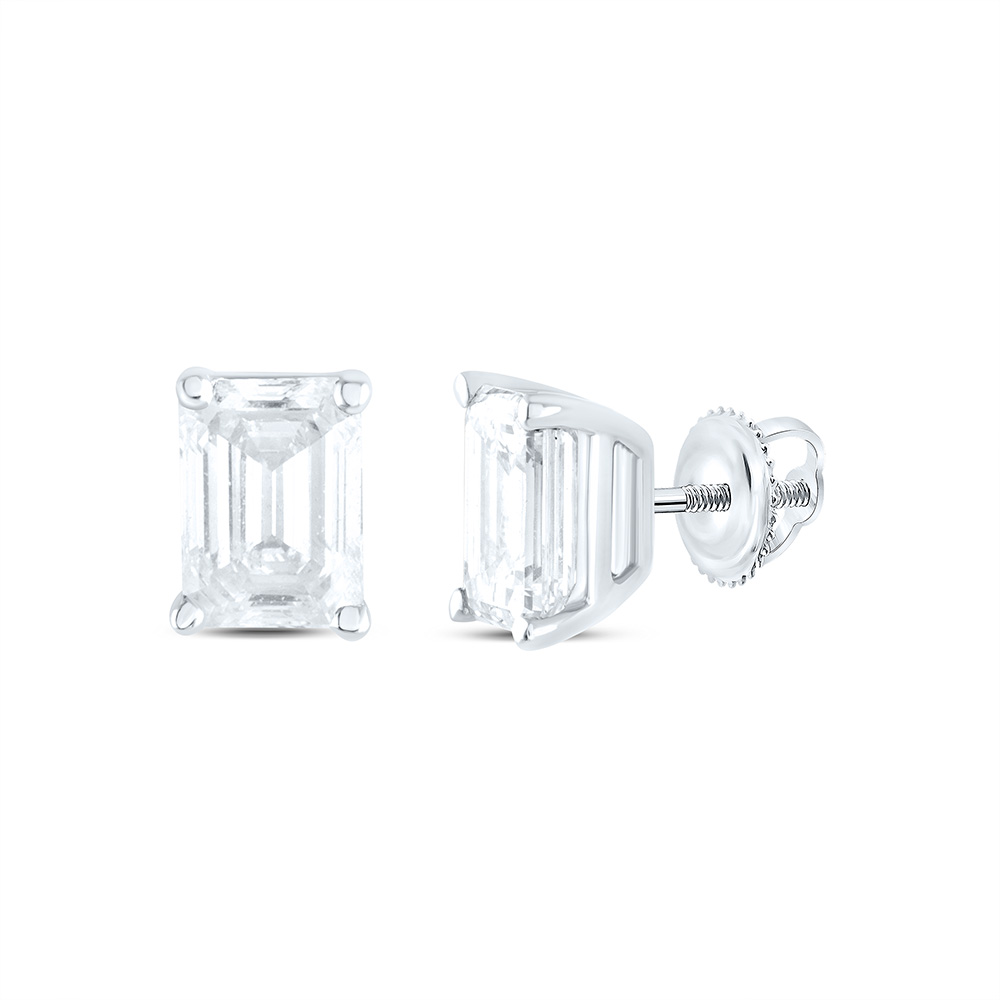 (0.49 gr. of 14k White Gold | Total Carat Weight: 0.20 ct. t.w. of Diamond | Length: 6mm | Width: 5mm | Clarity: I1 - I2 | Color: I - J | Unisex Adult Genuine Diamond Solitaire Emerald Statement Stud Earrings)