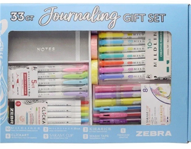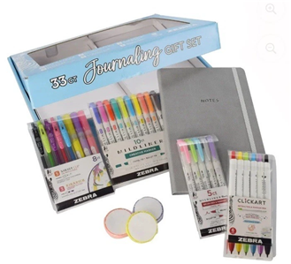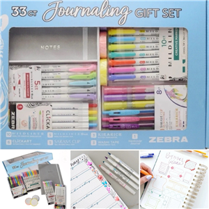 Zebra Journaling Gift Set -NEW- 33 CT Includes Journal Highlighters Markers Pens