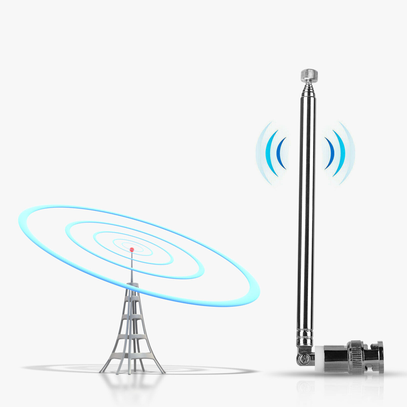 7-section telescopic stainless steel BNC radio antenna. This BNC radio antenna can freely rotate to adjust the best signal-receiving position.