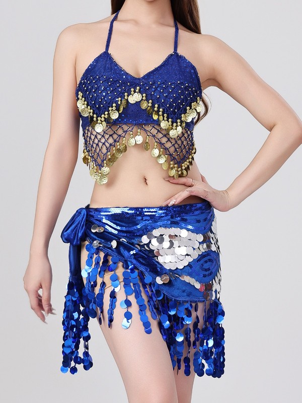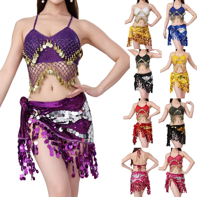 The included hip scarf waist skirt is a classic belly-dance element, enhancing the overall ethnic charm and adding a touch of mystery.