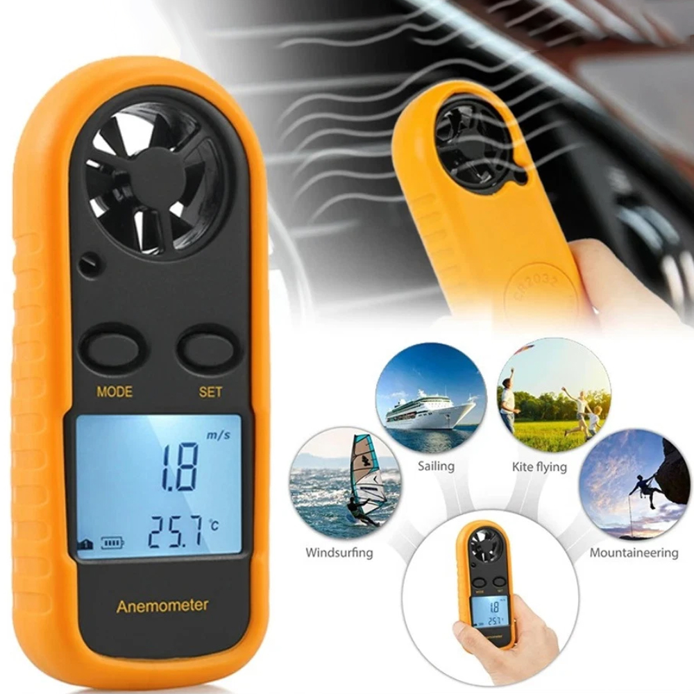 The anemometer displays wind speed in 5 parameters (m/s, km/h, ft/min, knots and mph) with a large backlit LCD display that is clearly visible day or night.