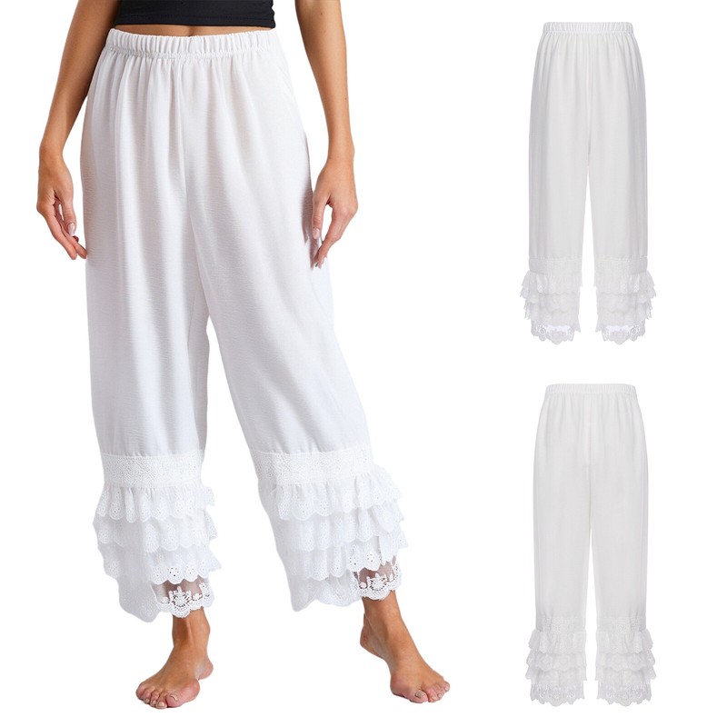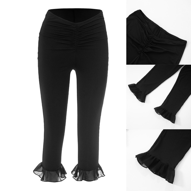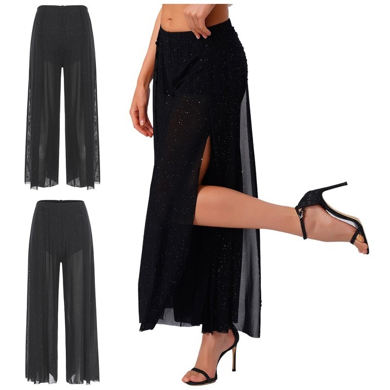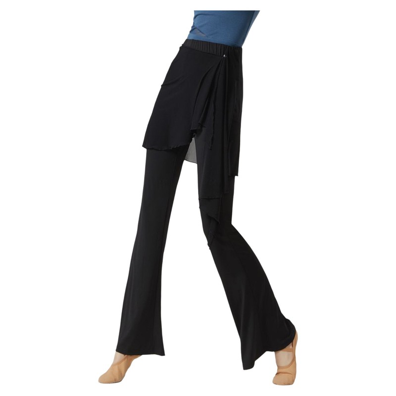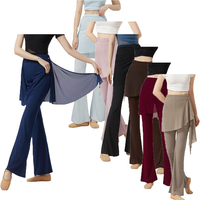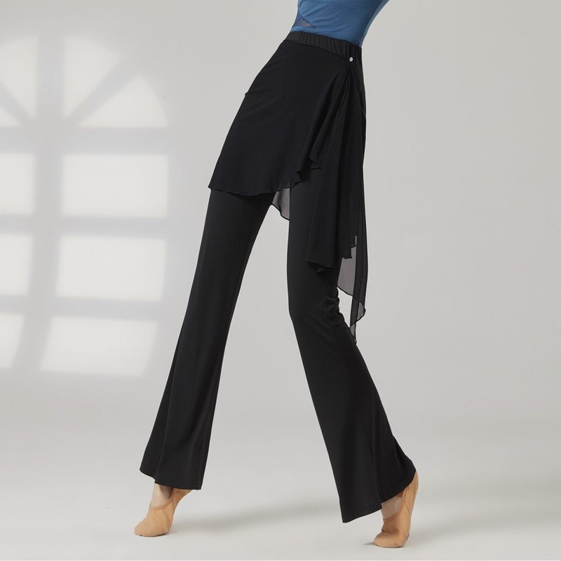 Womens Dance Pants Fake 2-piece Design Slightly Flared Long Pants Irregular