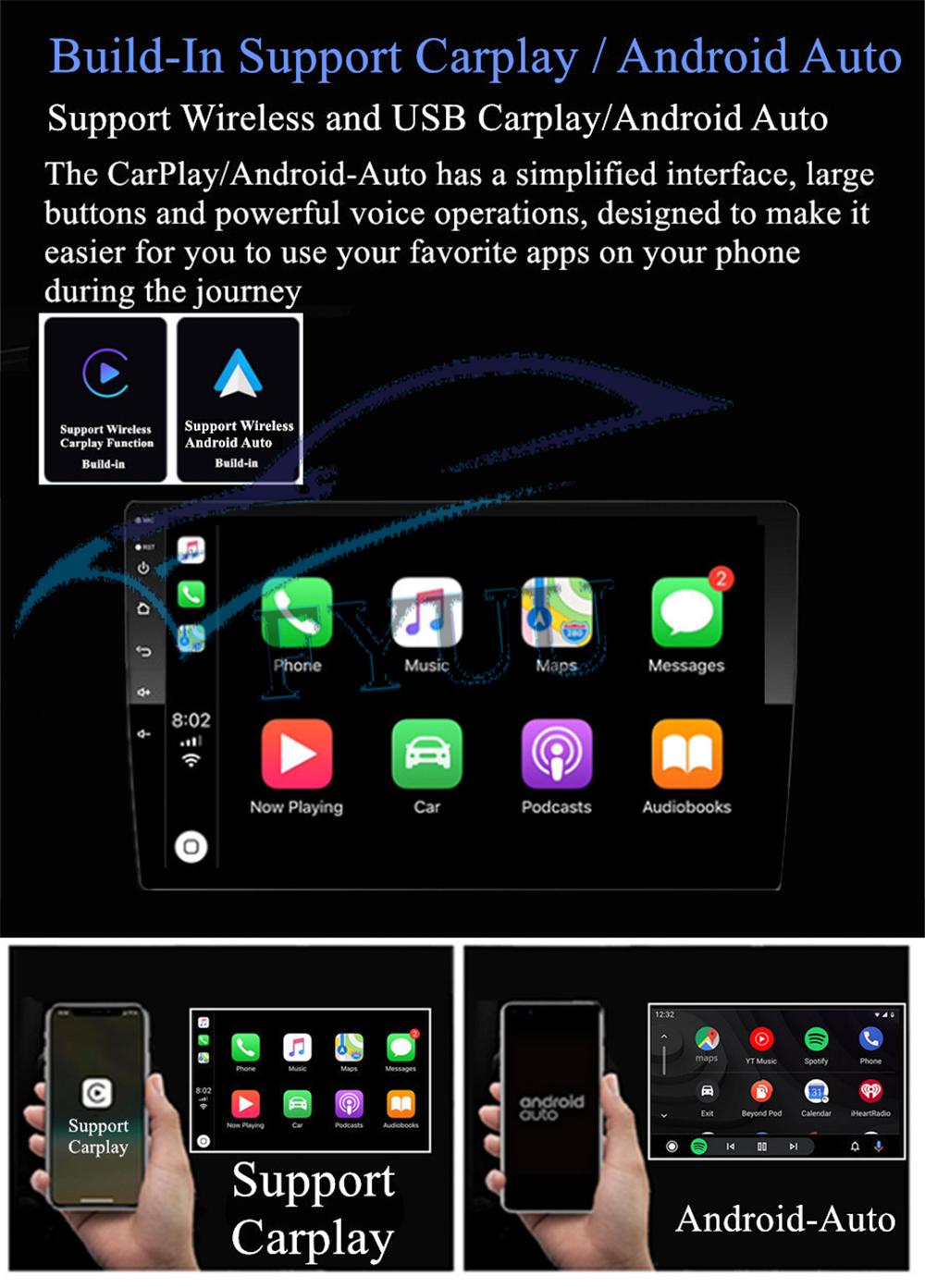 | Support Carplay/Android Auto | -Build-In Support WIFI Wireless & USB Wired Carplay And Android Auto. |